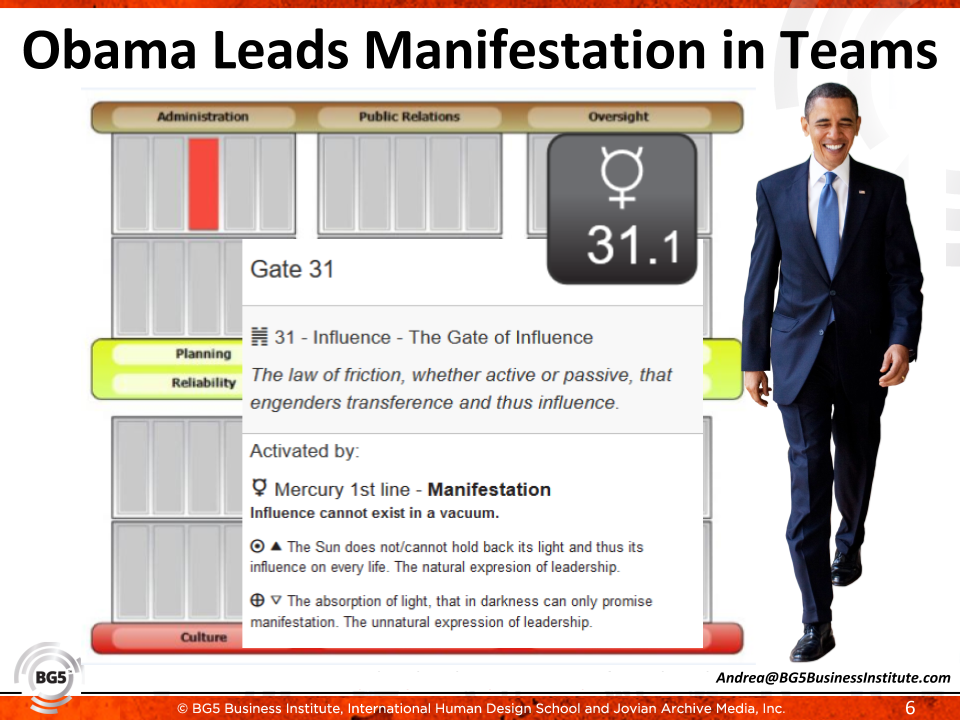 There is only one channel that creates a pure Manifesting Generator; that’s a Channel his rival Hillary Clinton has. The Channel of Charisma (34-20), connects the Energy Resource of the Sacral center directly to the Communication and Manifestation of the Throat center. So, to be mechanically correct in Human Design, Trump is a Generator with Manifesting potential. This makes Trump an “Express Builder” in the career language of BG5. BG5 is the small business (3-5 people, a "Penta") application of the Human Design System; OC16 (the organizing channels of 2-4 Pentas; up to 16 people) covers larger businesses, of which Donald has two channels that give him his big business strengths of Management and Interaction. Interaction is about building large businesses - think Richard Branson, who also has this strength.