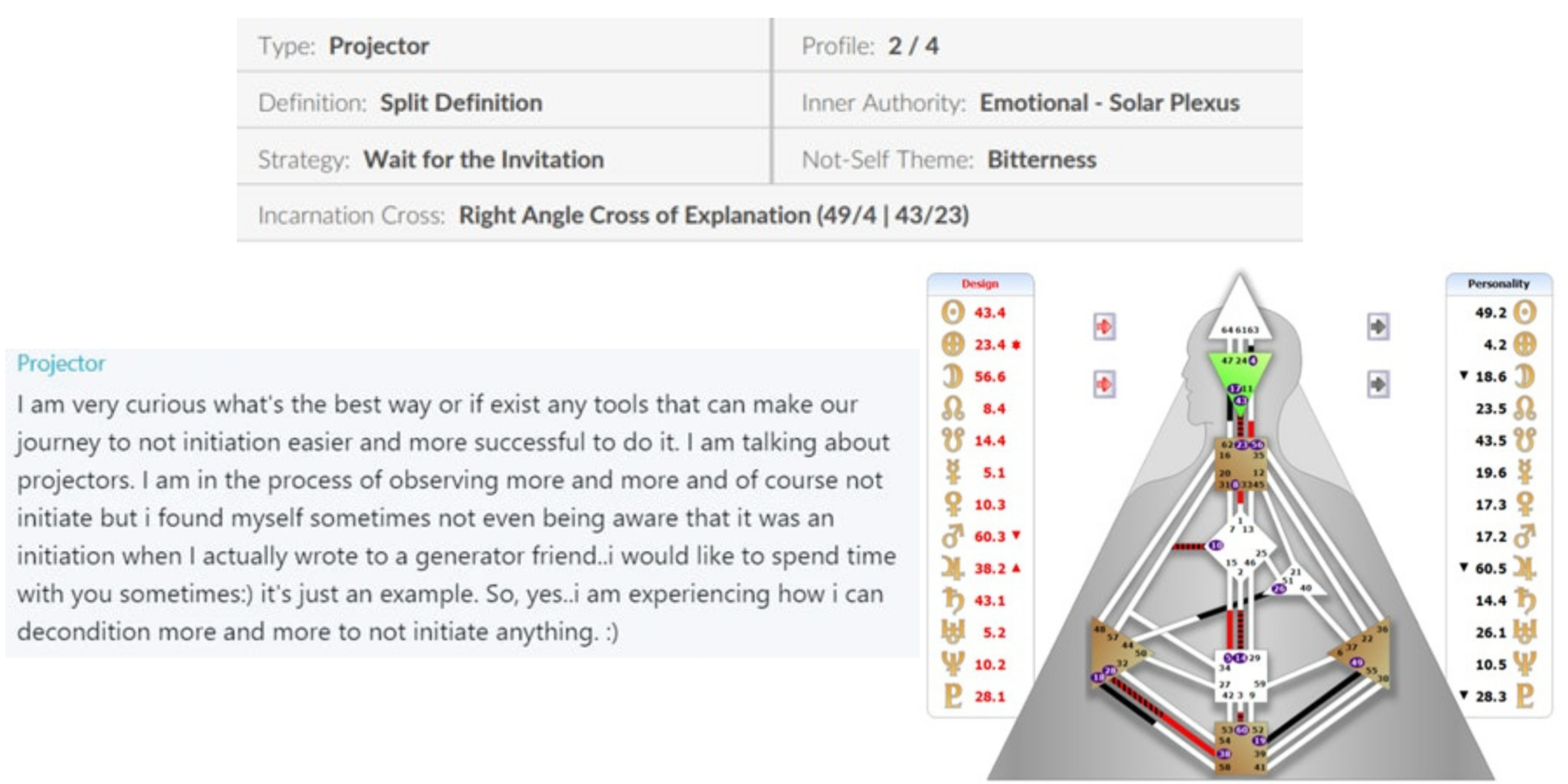 A HumanDesign.Live Advice Post by Hagen Artley, 2/5 Splenic Projector, Mental Split, Cross of Explanation
