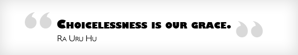 Choiceless? You bet we are. Choiceless in the thrall of the transit field, the neutrino program, the illusion of the Maia; choiceless to live your design - either as true self or not-self or some varying combination of the two. We are all filtering the neutrino program, helplessly living and dying on the Stage of Life in the Play of the Program.