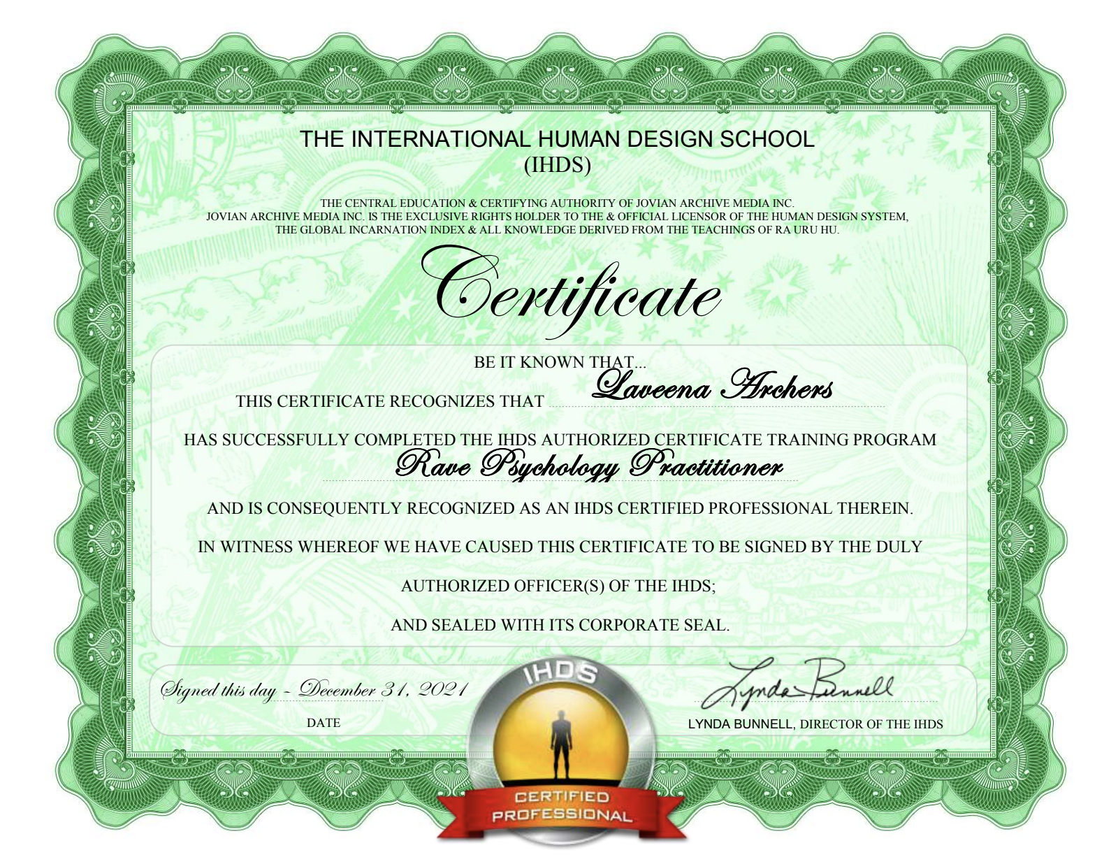 I can point you to my extensive Human Design educational Journey, the classes I've taught, and my professional intentions. I'm a Professional Analyst, a Living Your Design Guide and Teacher Trainer, Rave ABC's teacher and Cartography Teacher, as well as a BG5 Business Institute Certified Consultant. Currently, I am in the IHDS Differentiation Degree Program to become a Human Design Rave Psychologist/Primary Healthcare Practitioner and the final semester ofBG5 Advanced training for OC16 (medium to large business) Consultancy.